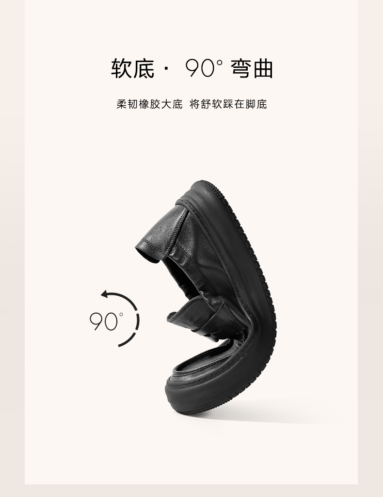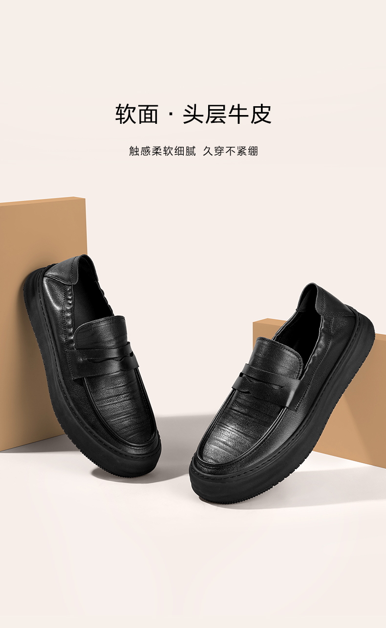 | 内增高:无 | 鞋跟形状:厚底 | 鞋面材质:牛皮革 | 流行元素:纯色 | 闭合方式:套脚 |