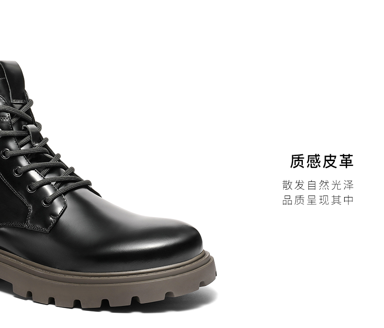 | 筒高数值:13CM | 性别:男子 | 靴筒筒面材质:牛皮革 | 里料材质:猪皮革织物面料 | 制鞋工艺:胶贴皮鞋 |