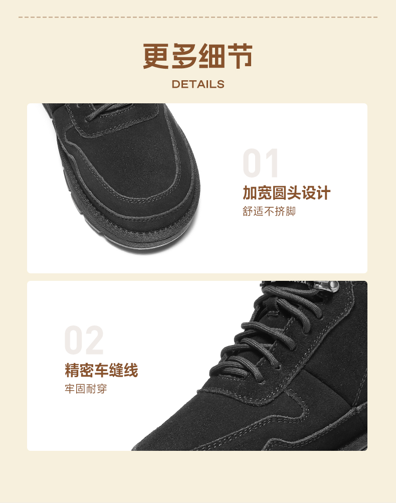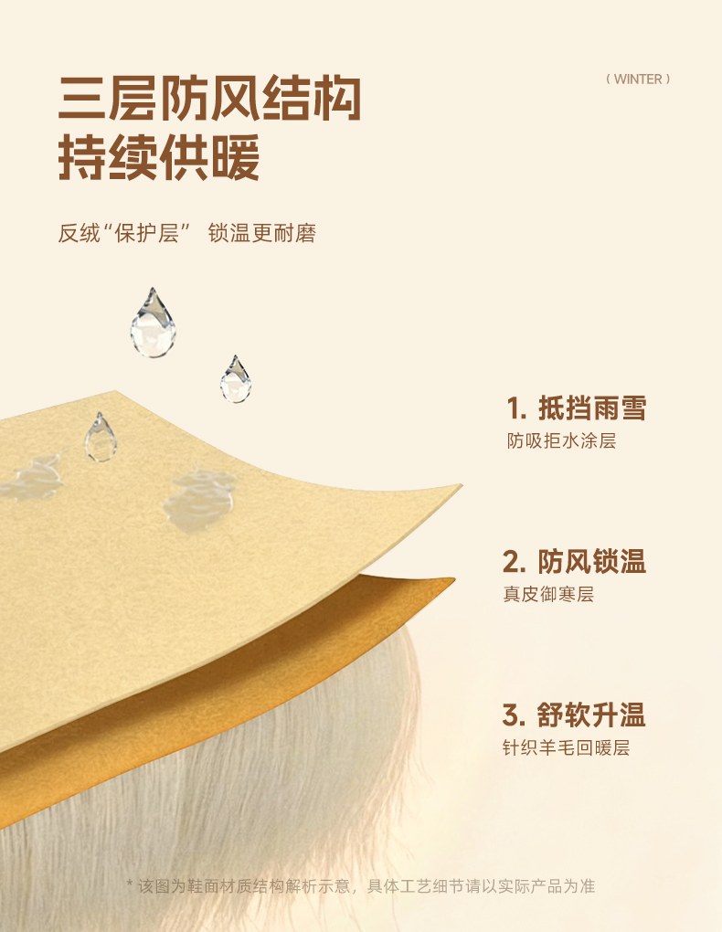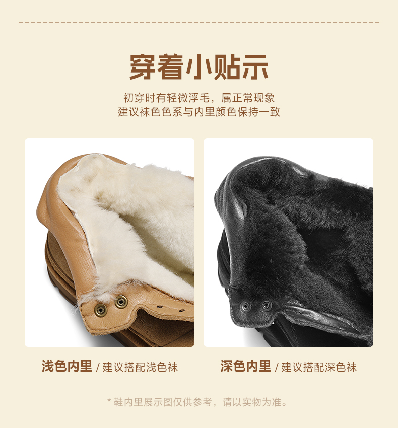 | 性别:男子 | 靴筒口围:35CM | 靴筒筒面材质:牛剖层革 | 里料材质:羊毛针织羊毛 | 上市时间:2025年冬季 |