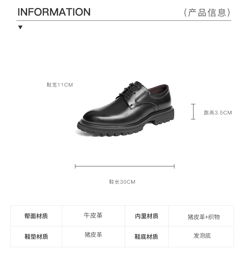 | 鞋面材质:牛皮革 | 适用场合:正装约会经典上班办公室 | 闭合方式:系带 | 所在区域:电子商务 | 40码鞋宽参考(男):11CM |