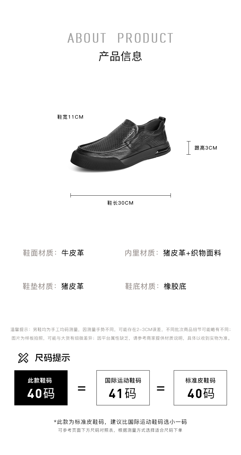 | 鞋面材质:牛皮革 | 适用场合:办公室 | 闭合方式:套脚 | 所在区域:电子商务 | 40码鞋宽参考(男):11CM |