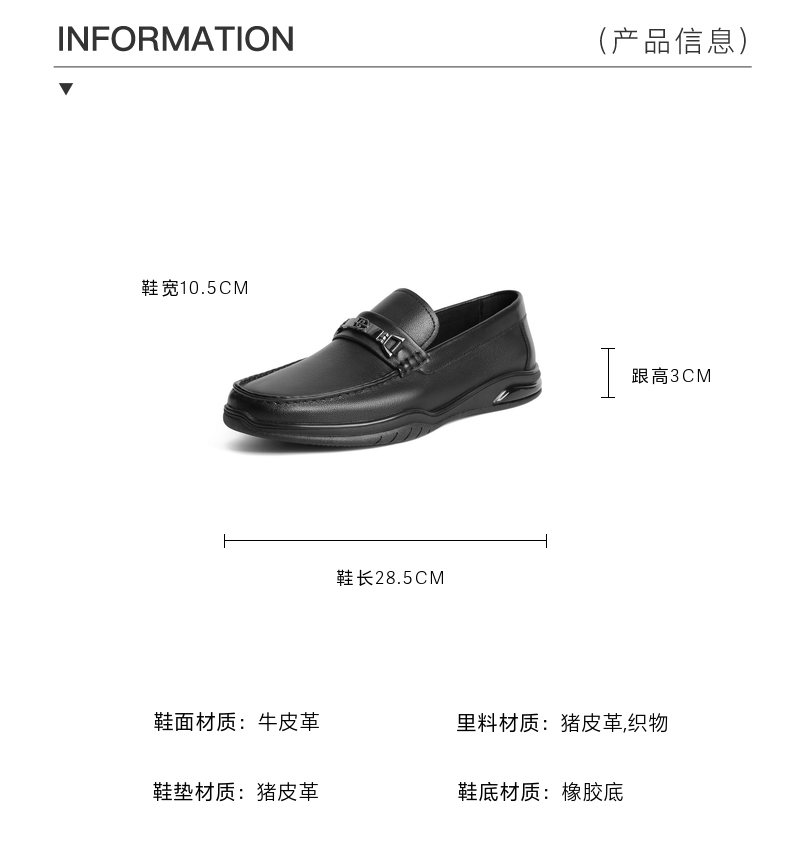 | 风格:休闲 | 色系:黑色 | 跟高数值:3CM | 40码鞋宽参考(男):10.5CM | 性别:男子 |
