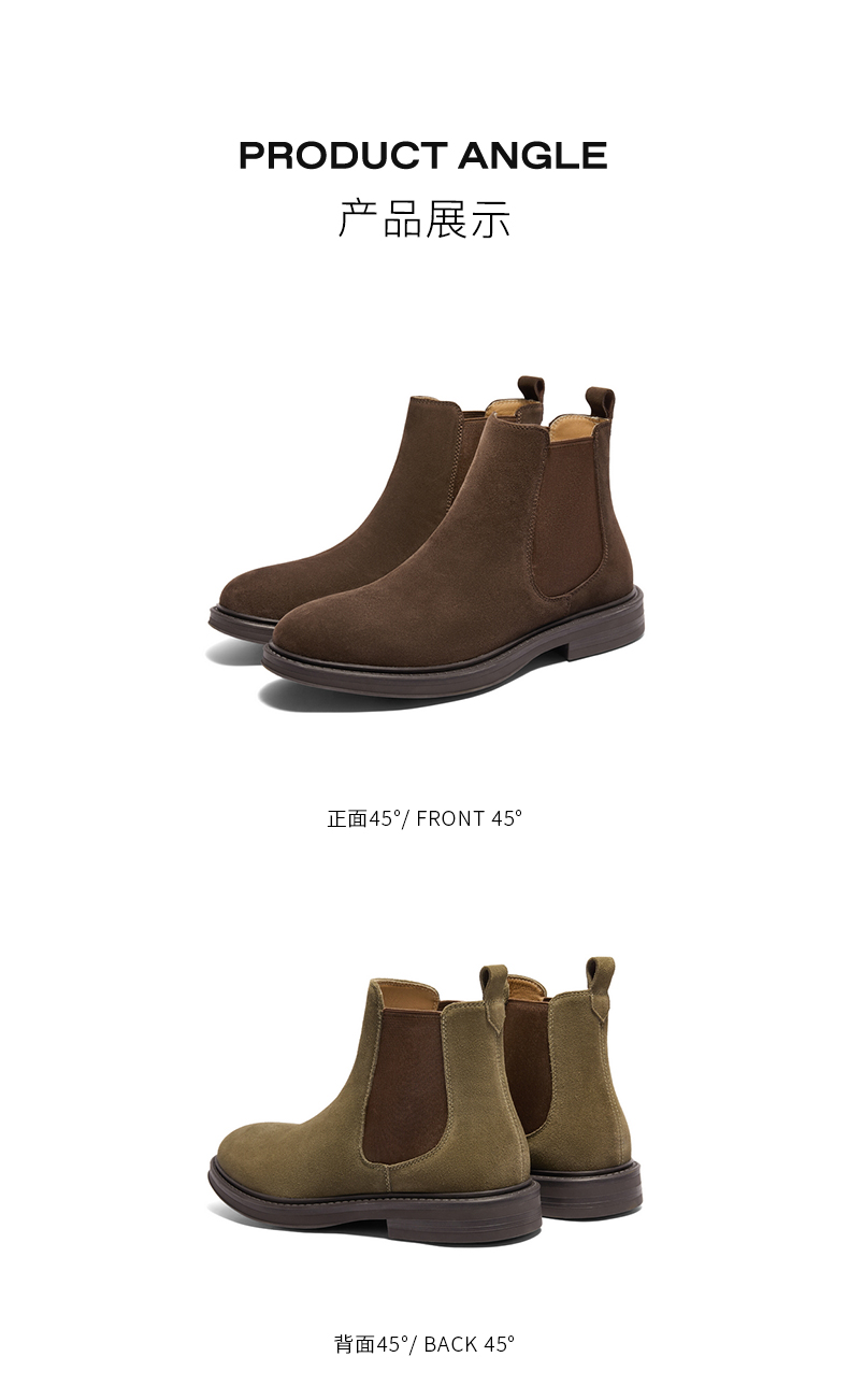 | 鞋类流行款式:切尔西靴 | 鞋头款式:圆头 | 执行标准:舒适上班鞋Q/LR001-2023 | 鞋面图案:纯色 | 鞋跟形状:厚底 |