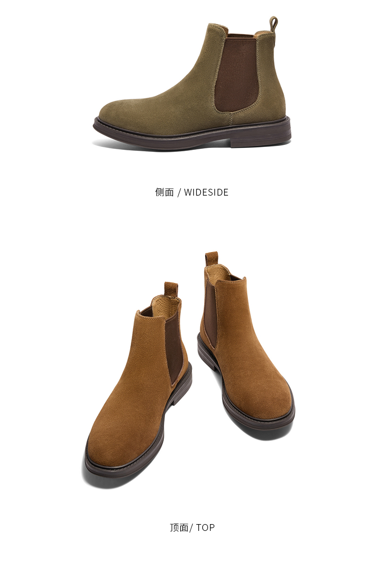| 跟高数值:3.5CM | 筒高数值:13CM | 性别:男子 | 靴筒筒面材质:牛剖层皮革织物面料 | 里料材质:猪皮革织物面料 |