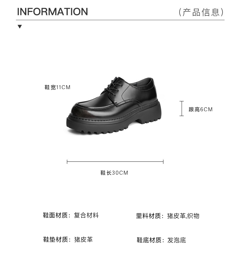| 风格:商务休闲 | 色系:黑色 | 跟高数值:6CM | 40码鞋宽参考(男):11CM | 性别:男子 |