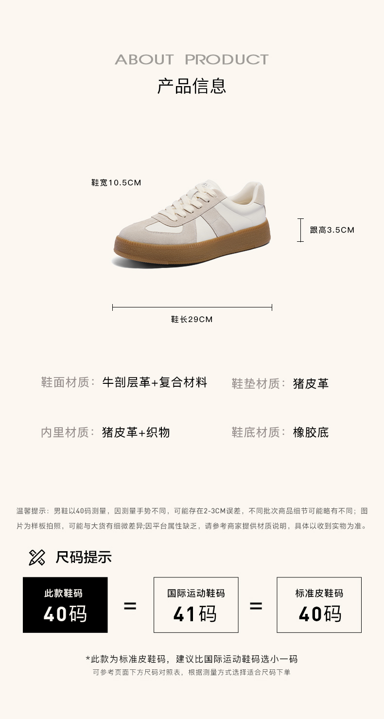 | 风格分类:德训鞋 | 上市时间:2024年秋季 | 生产/经销/进口厂家:经销厂家:百丽电子商务(上海)有限公司 | 鞋类流行款式:板鞋 | 鞋头款式:圆头 |