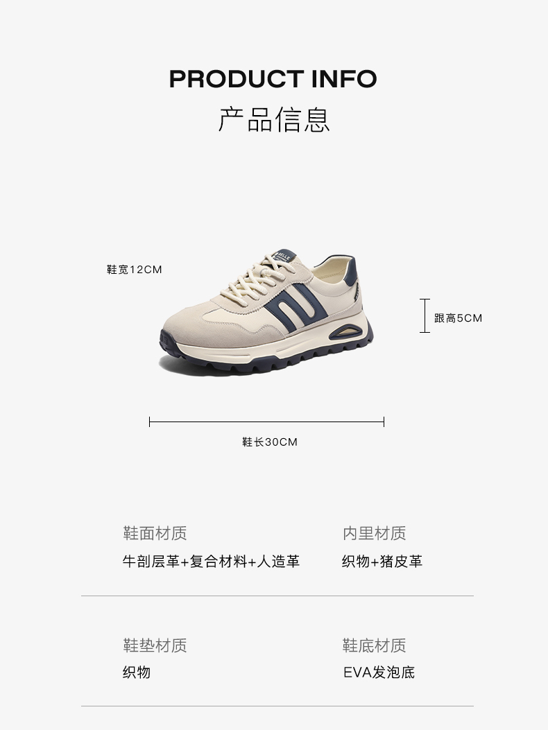 | 风格:休闲 | 色系:米色 | 跟高数值:5CM | 40码鞋宽参考(男):12CM | 性别:男子 |