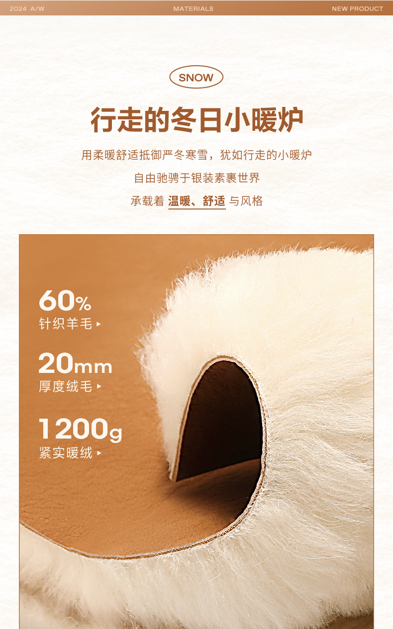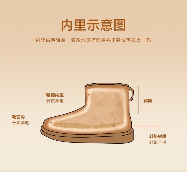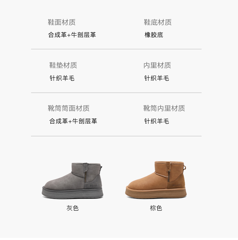 | 鞋类流行款式:雪地靴 | 鞋头款式:圆头 | 执行标准:舒适上班鞋Q/LR001-2023 | 鞋面图案:纯色 | 鞋跟形状:平跟 |