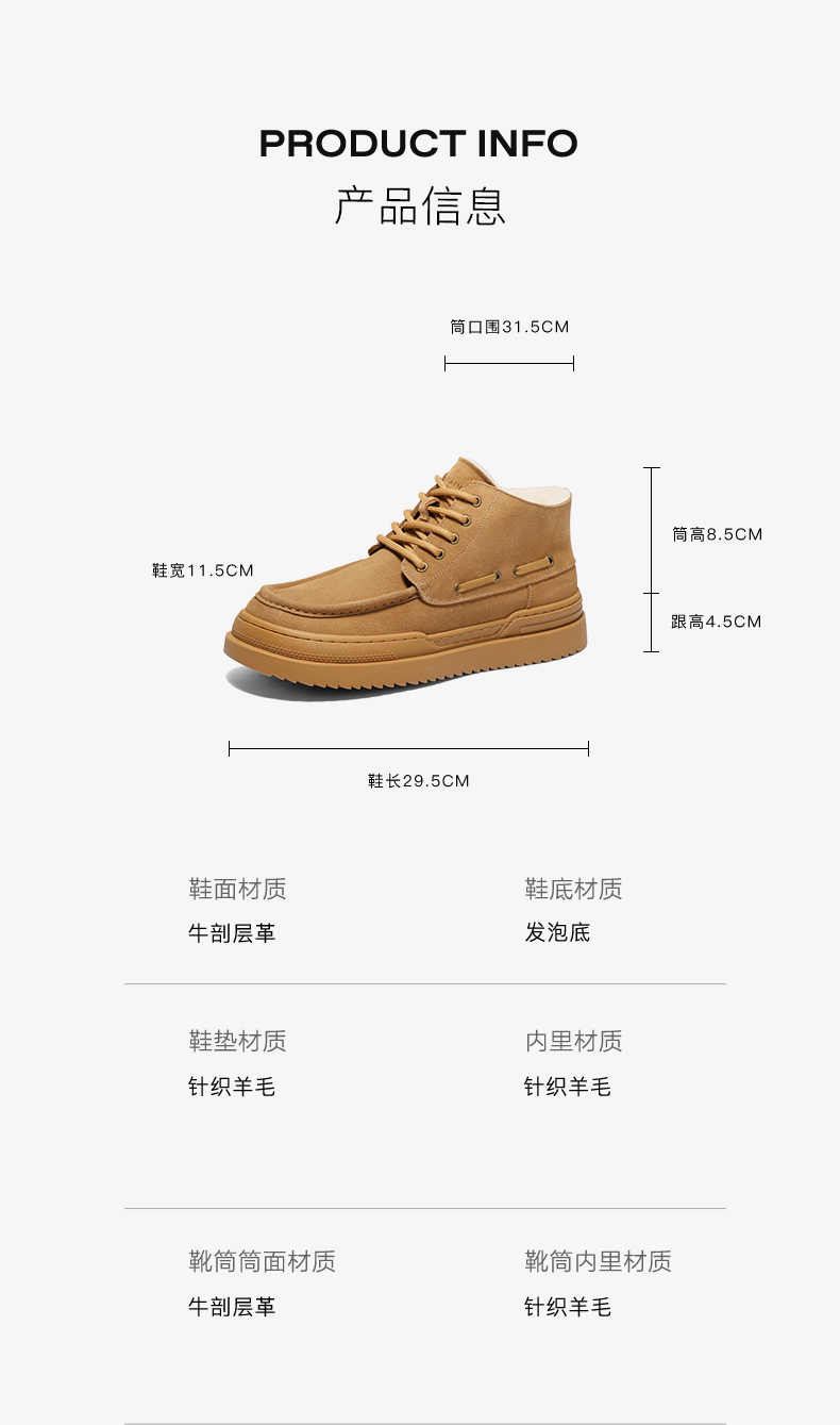 | 跟高数值:4.5CM | 筒高数值:8.5CM | 性别:男子 | 靴筒筒面材质:牛剖层皮革 | 里料材质:其它材质 |