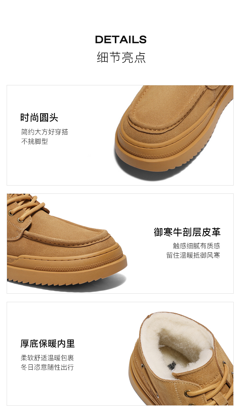 | 鞋类流行款式:雪地靴 | 鞋头款式:圆头 | 执行标准:舒适上班鞋Q/LR001-2023 | 鞋面图案:纯色 | 鞋跟形状:厚底 |