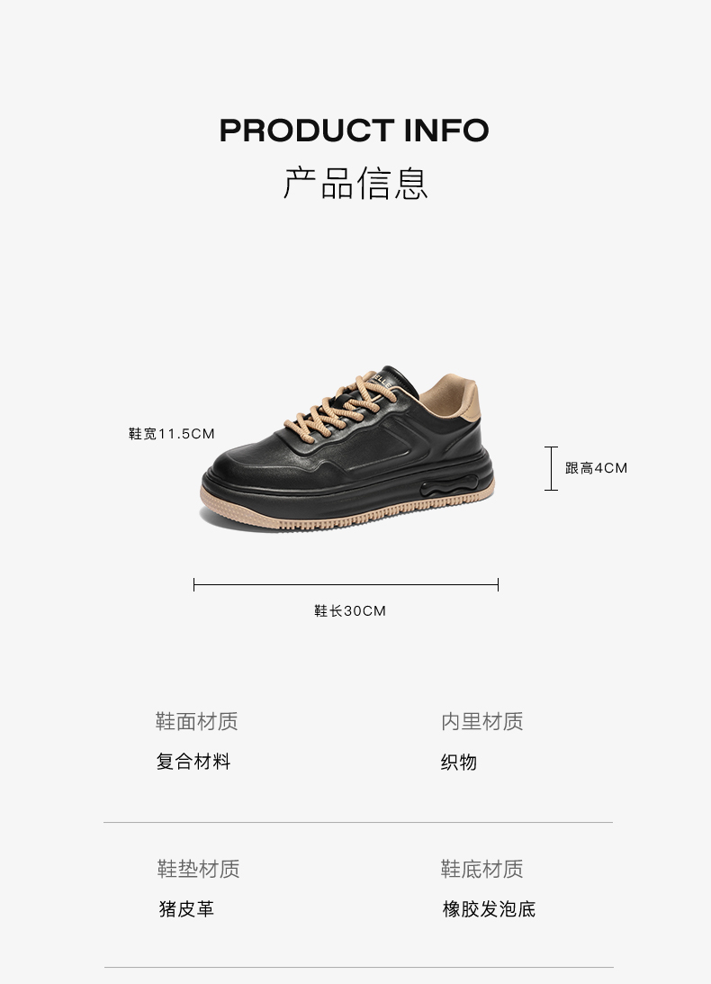 | 40码鞋长参考(男):30CM | 鞋帮:低帮 | 功能科技:耐磨 | 鞋底材质:橡胶发泡底 | 内增高:无 |