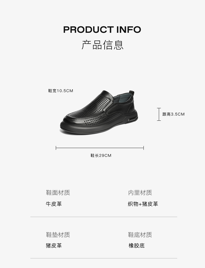| 40码鞋长参考(男):29CM | 鞋帮:低帮 | 鞋头款式:圆头 | 鞋底材质:橡胶底 | 鞋面图案:纯色 |