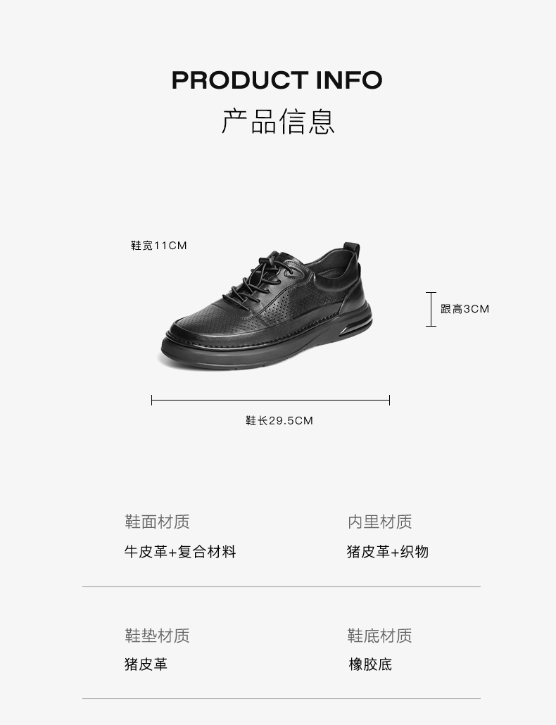 | 风格:休闲 | 色系:黑色 | 跟高数值:3CM | 40码鞋宽参考(男):11CM | 性别:男子 |