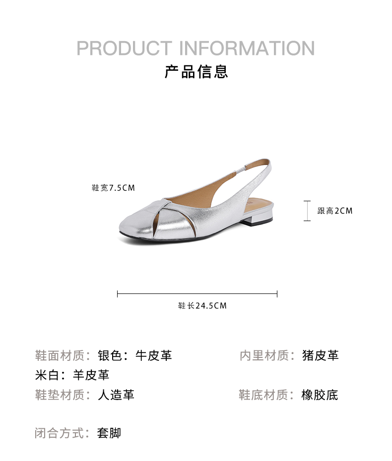 | 跟高数值:2CM | 色系:银色 | 配跟:无 | 性别:女子 | 里料材质:猪皮革 |