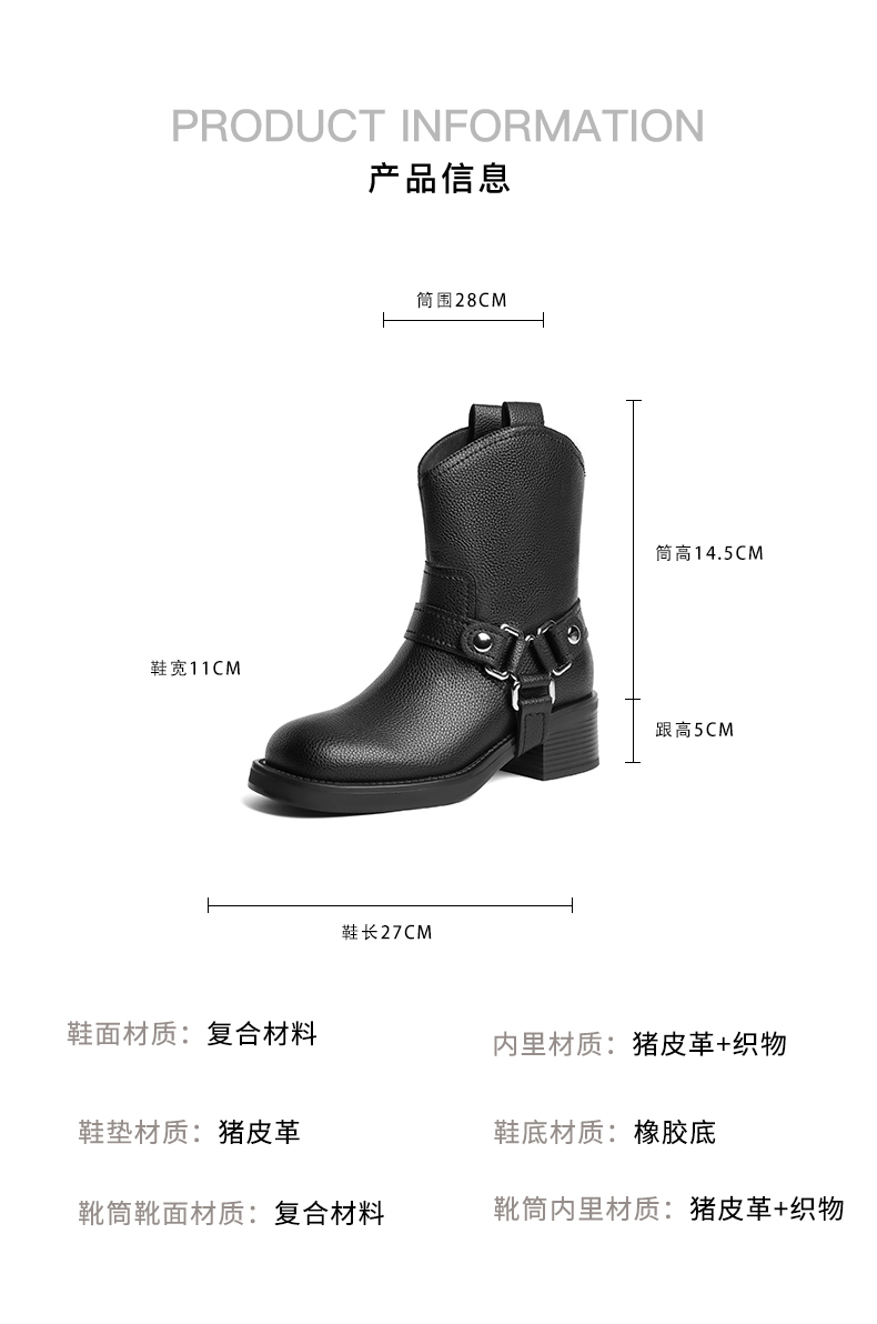 | 参考鞋宽(女):11CM | 风格:休闲 | 色系:黑色 | 跟高数值:5CM | 筒高数值:14.5CM |