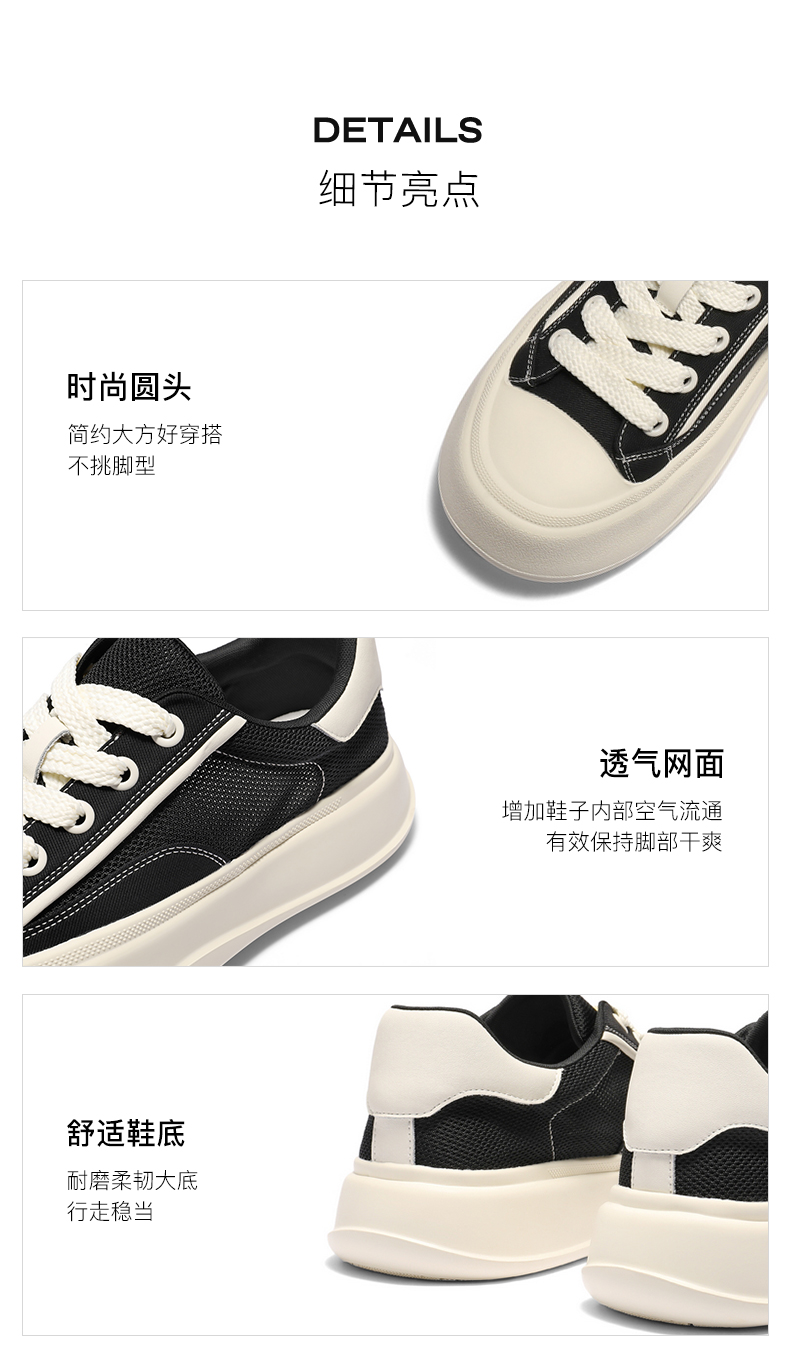 | 内增高:无 | 鞋跟形状:厚底 | 鞋面材质:织物 | 流行元素:打孔透气 | 闭合方式:系带 |