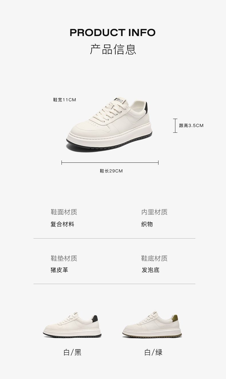 | 风格:休闲 | 色系:白色 | 跟高数值:3.5CM | 40码鞋宽参考(男):11CM | 性别:男子 |