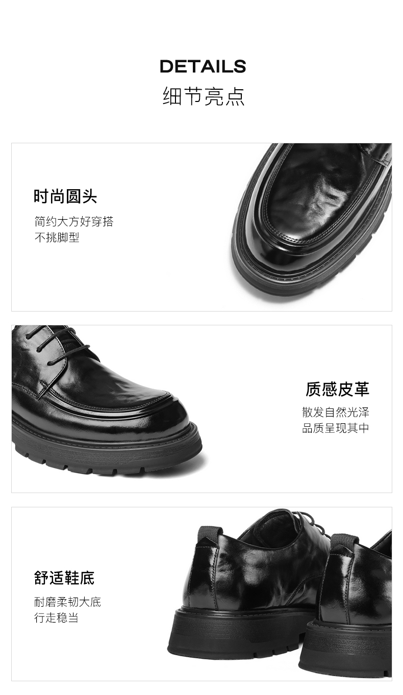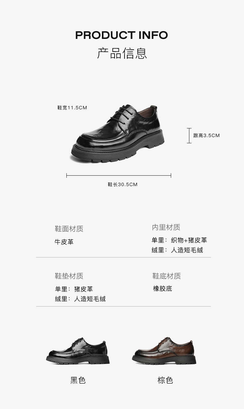 | 里料材质:猪皮革织物 | 上市时间:2026年春季 | 制鞋工艺:胶贴皮鞋 | 款式季节:春季 | 鞋垫材质:猪皮革 |