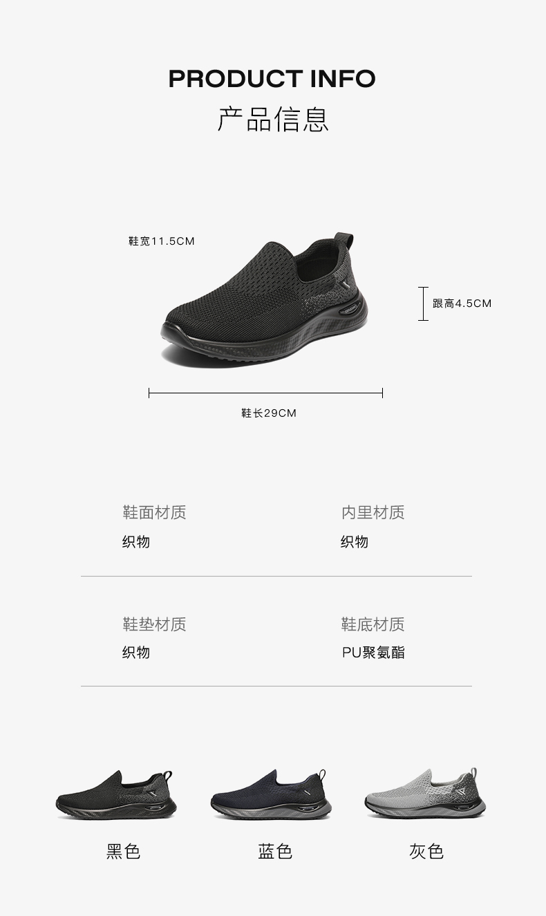 | 40码鞋长参考(男):29CM | 鞋帮:低帮 | 鞋头款式:圆头 | 鞋底材质:PU | 鞋面图案:纯色 |
