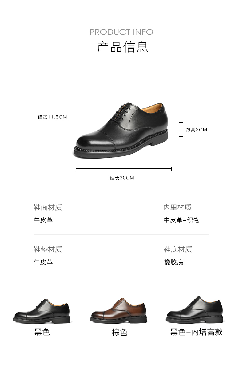 | 风格:商务 | 色系:棕色 | 跟高数值:3CM | 40码鞋宽参考(男):11.5CM | 性别:男子 |