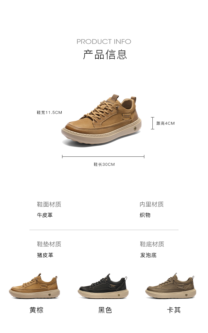 | 风格:休闲 | 色系:黄色 | 跟高数值:4CM | 40码鞋宽参考(男):11.5CM | 性别:男子 |