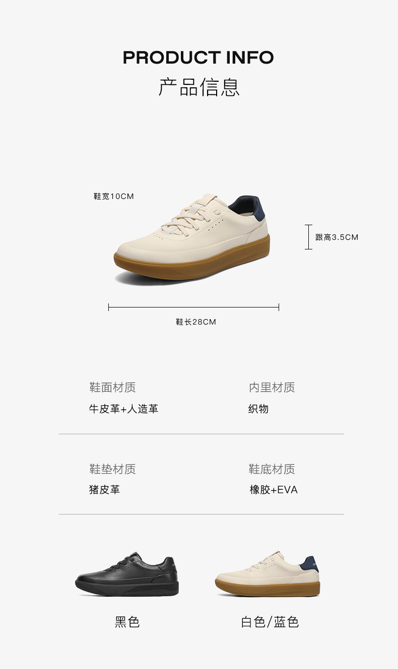 | 风格:休闲 | 色系:白色 | 跟高数值:3.5CM | 40码鞋宽参考(男):10CM | 性别:男子 |