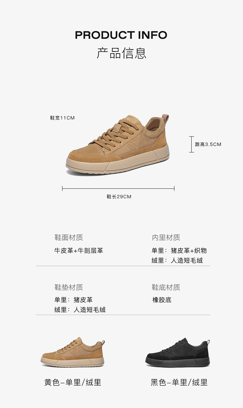 | 风格:休闲 | 色系:黄色 | 跟高数值:3.5CM | 40码鞋宽参考(男):11CM | 性别:男子 |