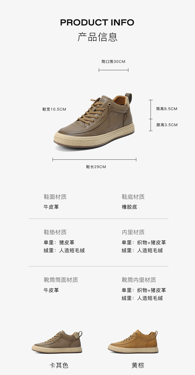 | 风格:休闲 | 色系:卡其 | 跟高数值:3.5CM | 40码鞋宽参考(男):10.5CM | 性别:男子 |