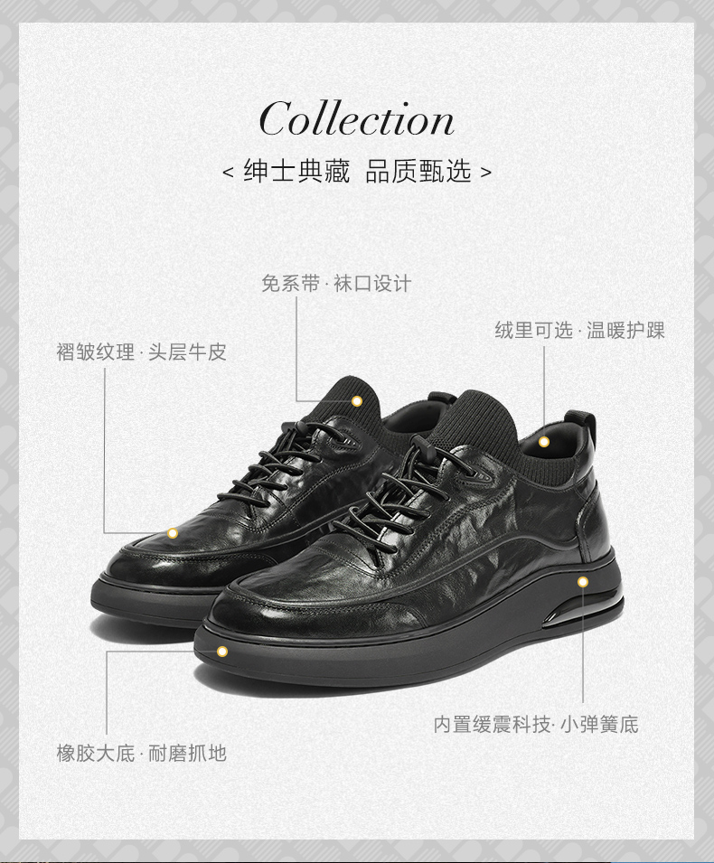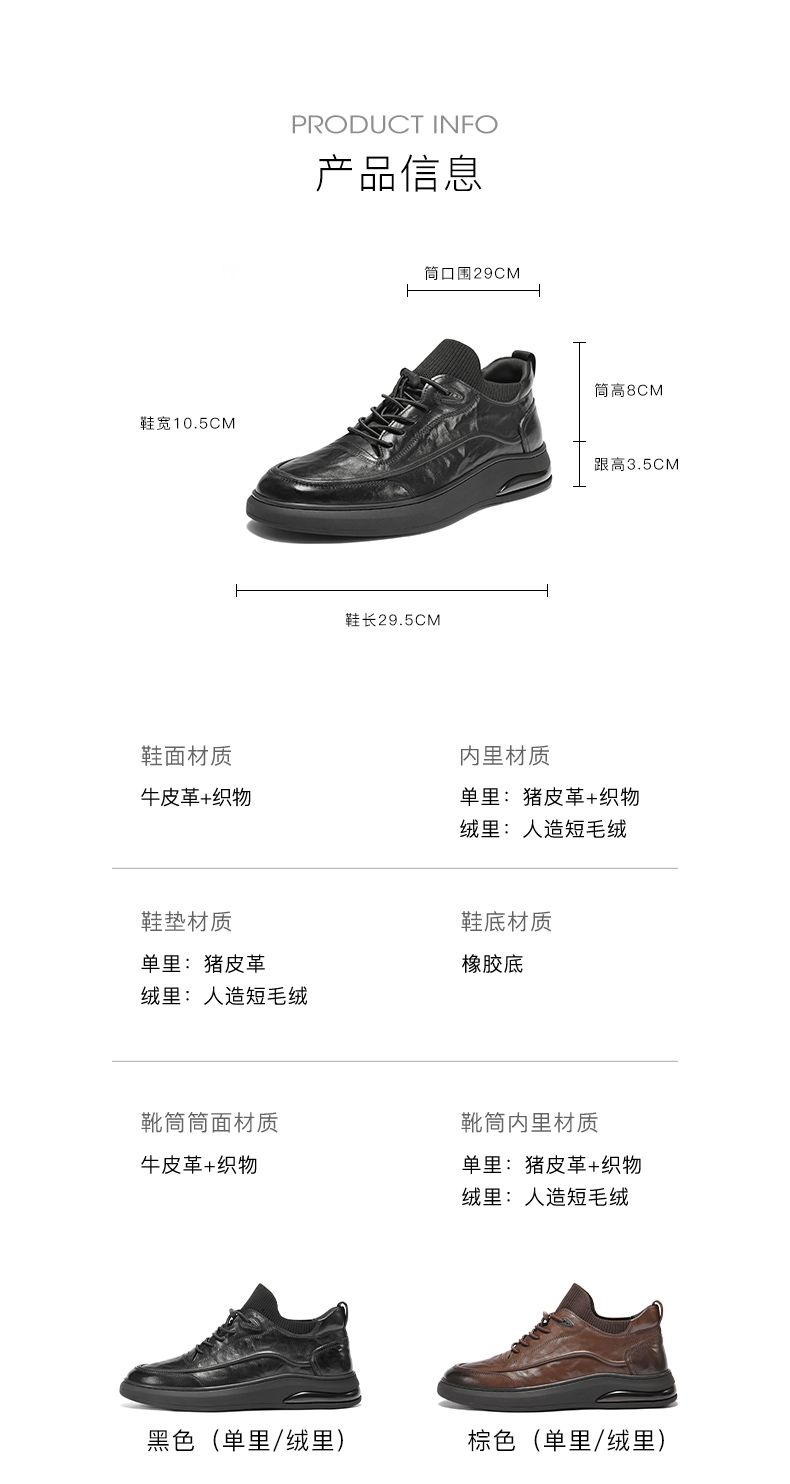 | 风格:休闲 | 色系:黑色 | 跟高数值:3.5CM | 40码鞋宽参考(男):10.5CM | 筒高数值:8CM |
