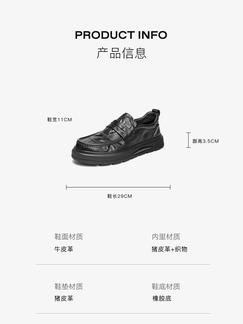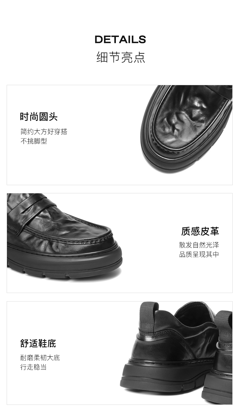 | 内增高:无 | 鞋跟形状:厚底 | 鞋面材质:牛皮革 | 流行元素:纯色 | 闭合方式:套脚 |
