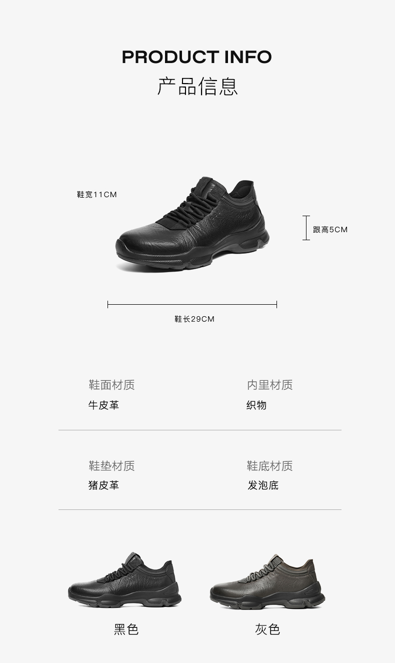 | 风格:休闲 | 色系:黑色 | 跟高数值:5CM | 40码鞋宽参考(男):11CM | 性别:男子 |