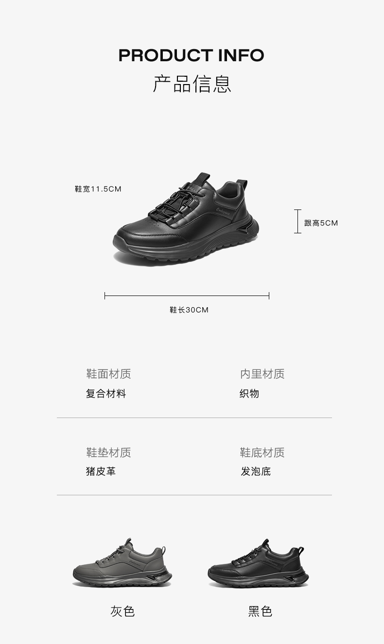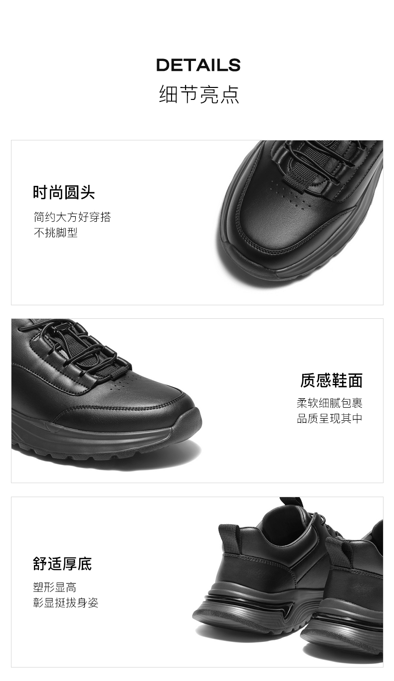 | 风格:休闲 | 色系:黑色 | 跟高数值:5CM | 40码鞋宽参考(男):11.5CM | 性别:男子 |