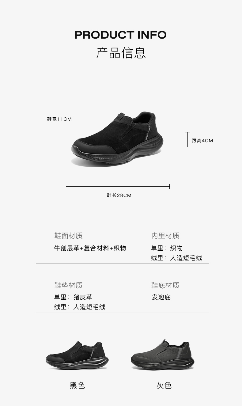 | 40码鞋长参考(男):28CM | 鞋头款式:圆头 | 鞋底材质:发泡底 | 鞋面图案:纯色 | 内增高:无 |