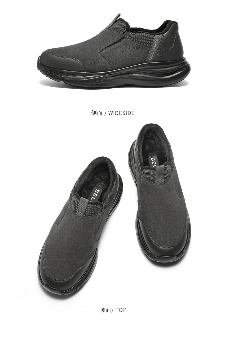 | 色系:灰色 | 跟高数值:4CM | 40码鞋宽参考(男):11CM | 性别:男子 | 里料材质:人造短毛绒 |
