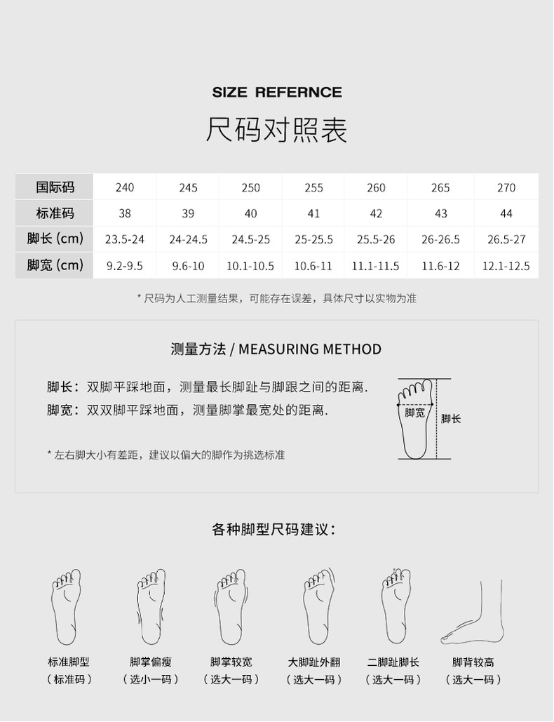| 法国码 | 38 | 39 | 40 | 41 | 42 | 43 | 44 |