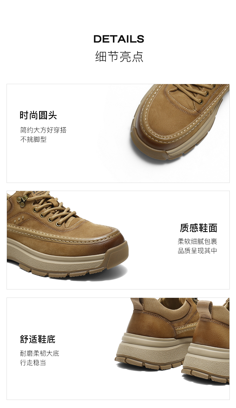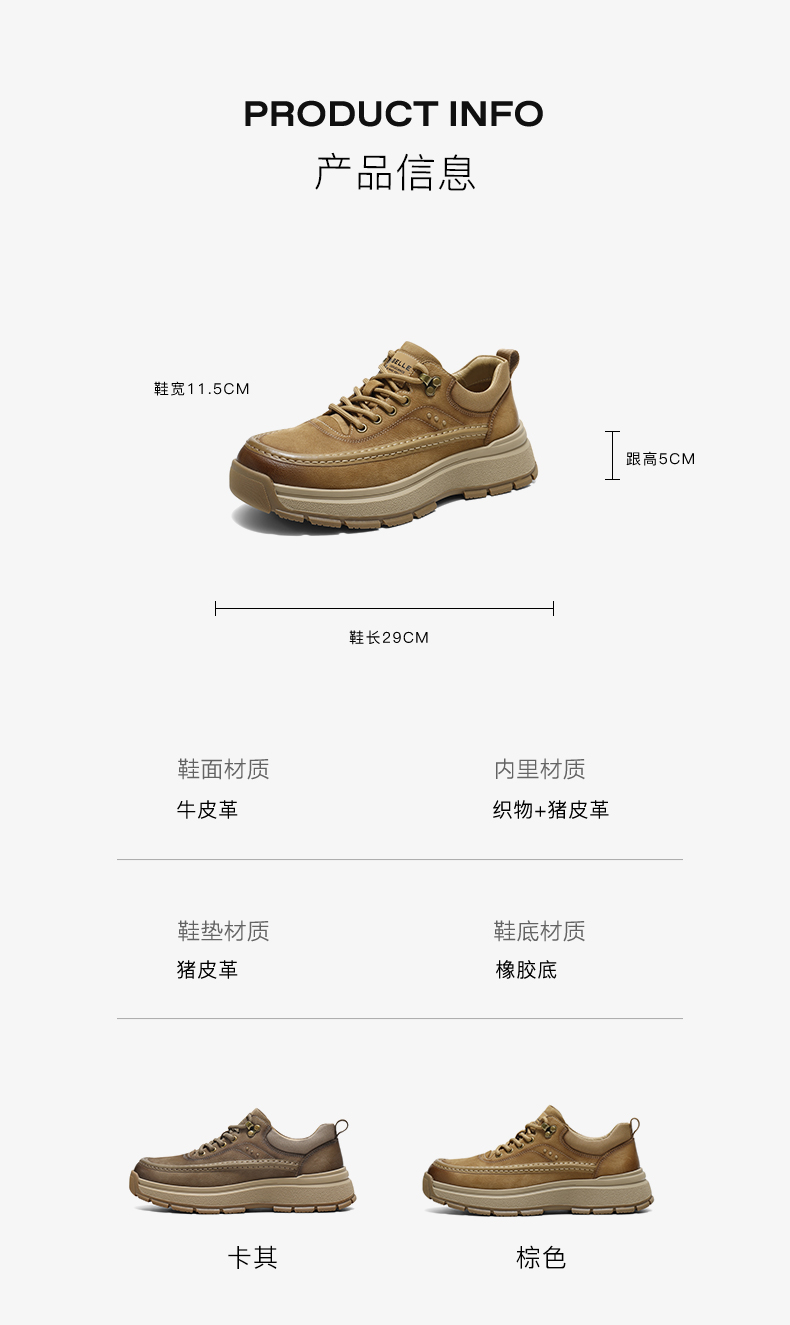 | 风格:休闲 | 色系:卡其 | 跟高数值:5CM | 40码鞋宽参考(男):11.5CM | 性别:男子 |