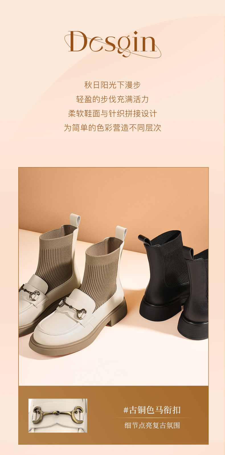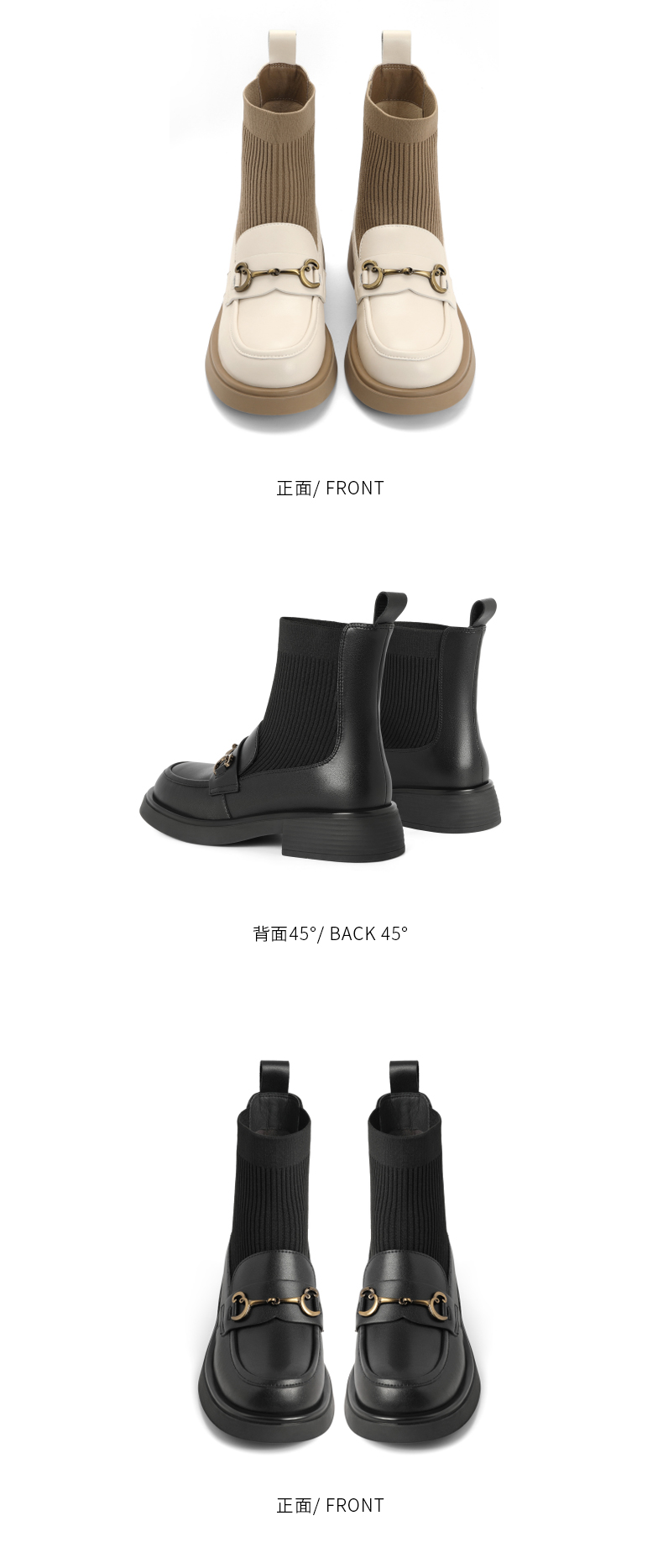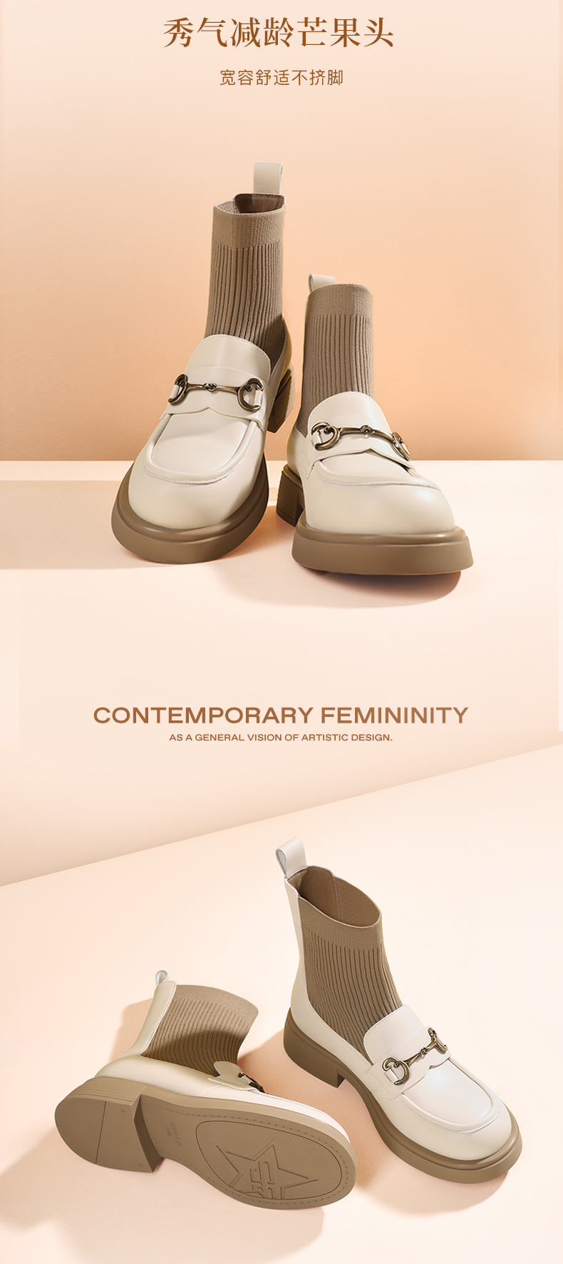 | 鞋类流行款式:袜靴 | 鞋头款式:圆头 | 执行标准:舒适上班鞋Q/LR001-2023 若与实物产生差异,请以实物标签为准 | 跟高范围:中跟鞋(3-5CM) | 鞋面图案:纯色 |