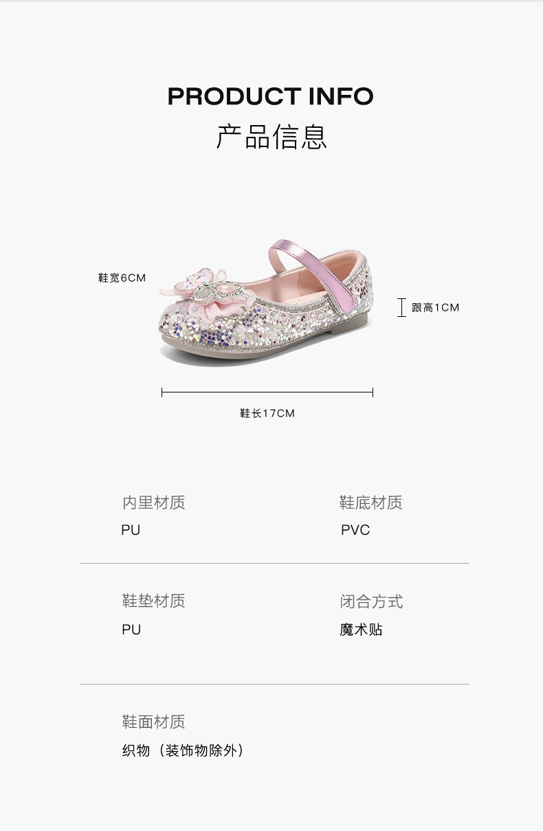 | 色系:粉色 | 鞋头:圆头 | 性别:女童 | 里料材质:PU革 | 上市时间:2025年春季 |