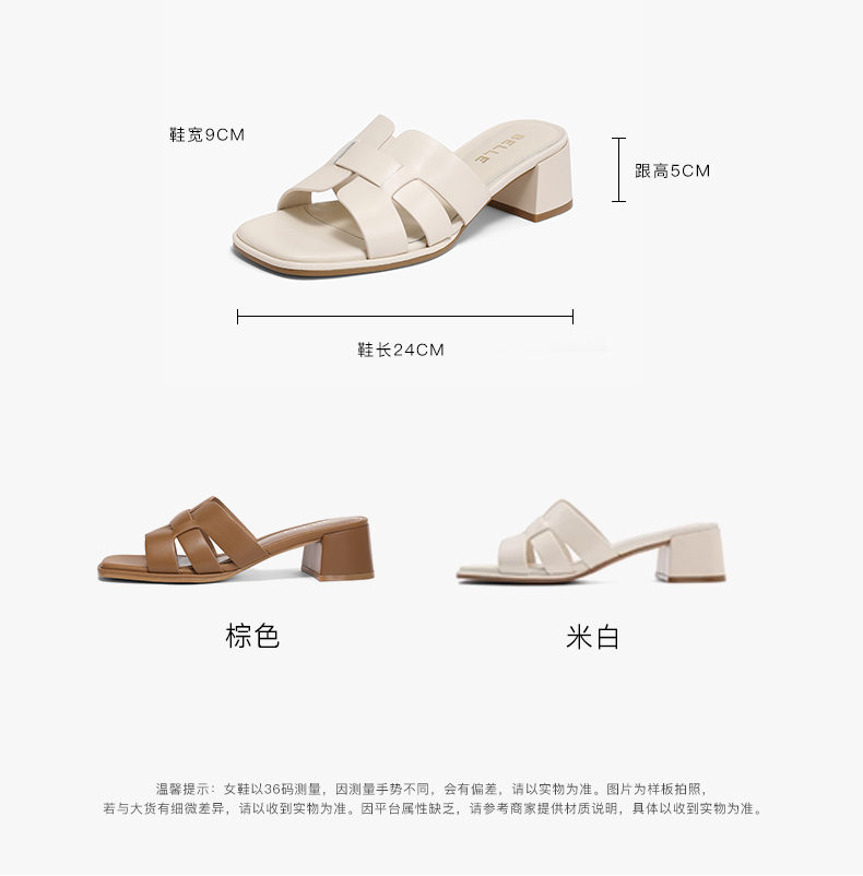| 鞋类流行款式:凉拖鞋 | 鞋头款式:方头 | 执行标准:皮凉鞋GB/T22756-2017 若与实物产生差异,请以实物标签为准 | 跟高范围:中跟鞋(3-5CM) | 鞋面图案:纯色 |