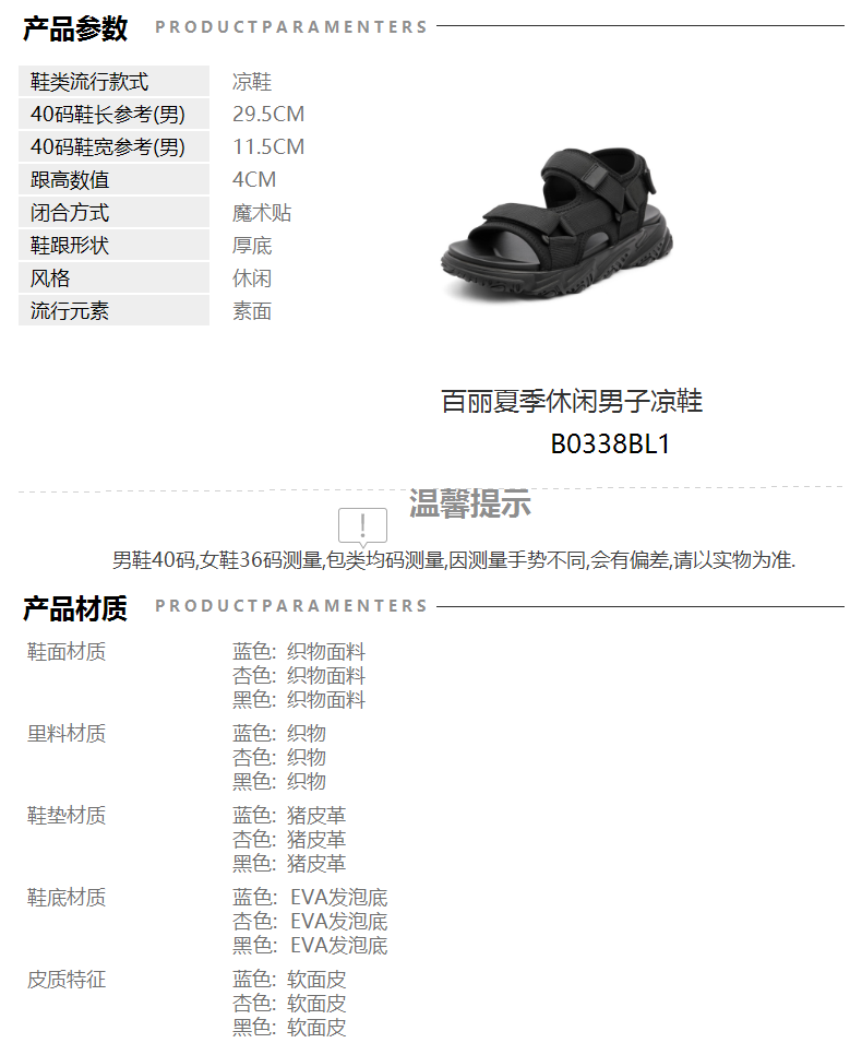 | 40码鞋长参考(男):29.5CM | 鞋头款式:露趾 | 鞋底材质:EVA发泡底 | 鞋面图案:纯色 | 鞋跟形状:厚底 |