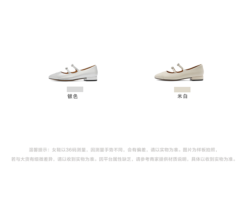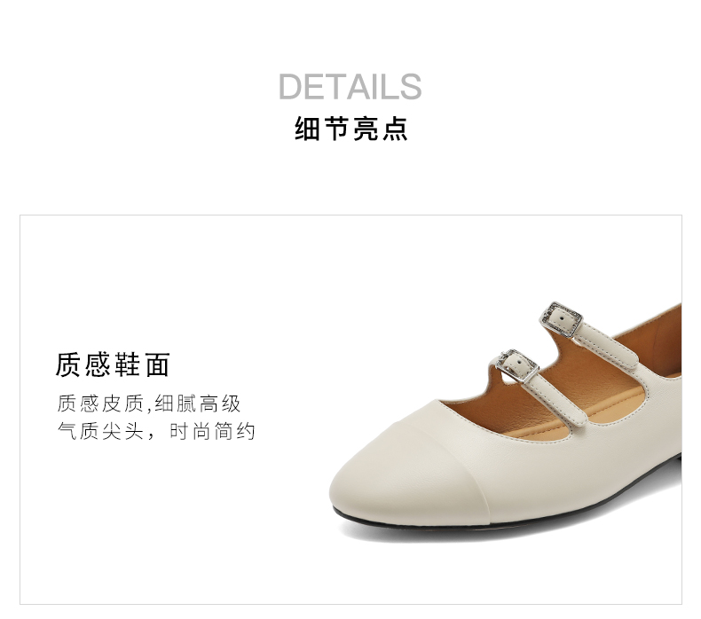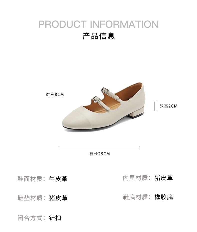 | 风格:玛丽珍 | 跟高数值:2CM | 色系:米白 | 配跟:无 | 性别:女子 |