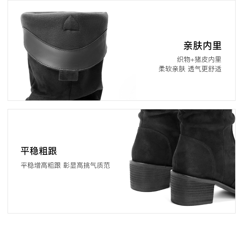 | 靴筒口围:37CM | 风格分类:牛仔靴 | 上市时间:2024年冬季 | 生产/经销/进口厂家:百丽电子商务(上海)有限公司 | 鞋类流行款式:弹力靴 |
