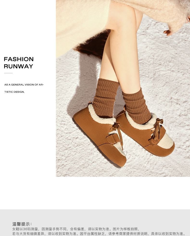 | 色系:棕色 | 参考标准尺码:36码 | 跟高数值:2.5CM | 性别:女子 | 里料材质:人造毛绒 |
