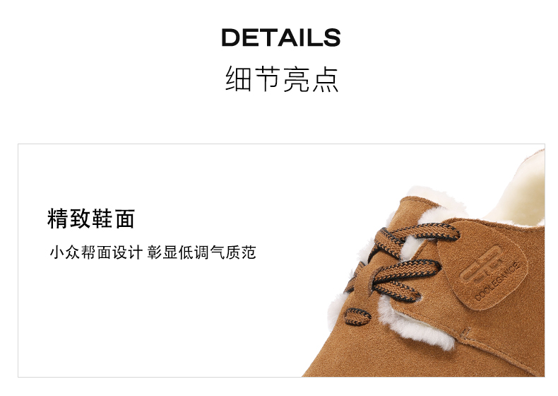 | 制鞋工艺:车线胶粘 | 款式季节:冬季 | 鞋垫材质:针织羊毛 | 渠道划分:电商专销 | 前掌高度:无 |