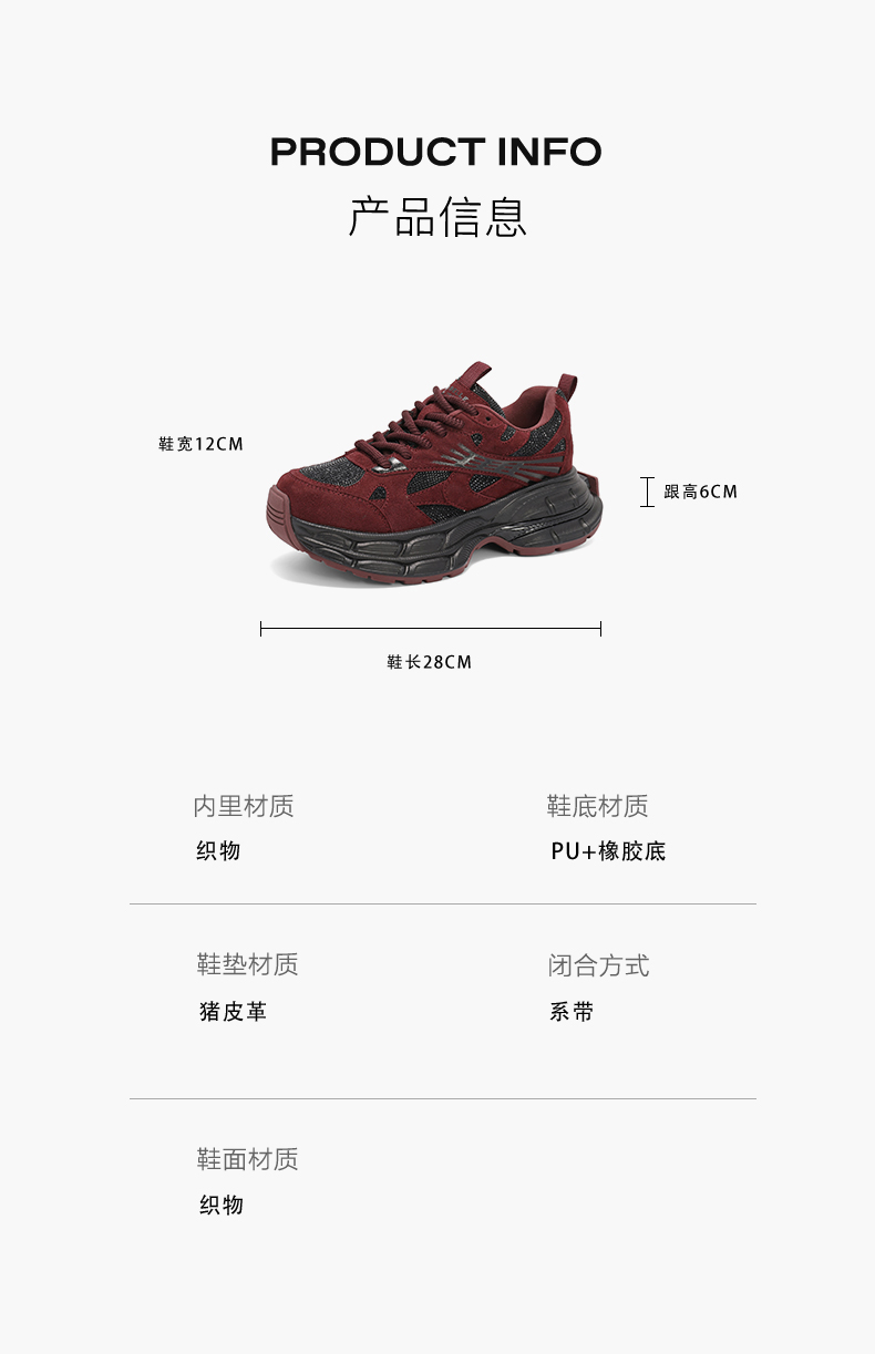 | 风格分类:老爹鞋 | 上市时间:2025年春季 | 生产/经销/进口厂家:百丽电子商务(上海)有限公司 | 鞋类流行款式:老爹鞋 | 鞋头款式:圆头 |