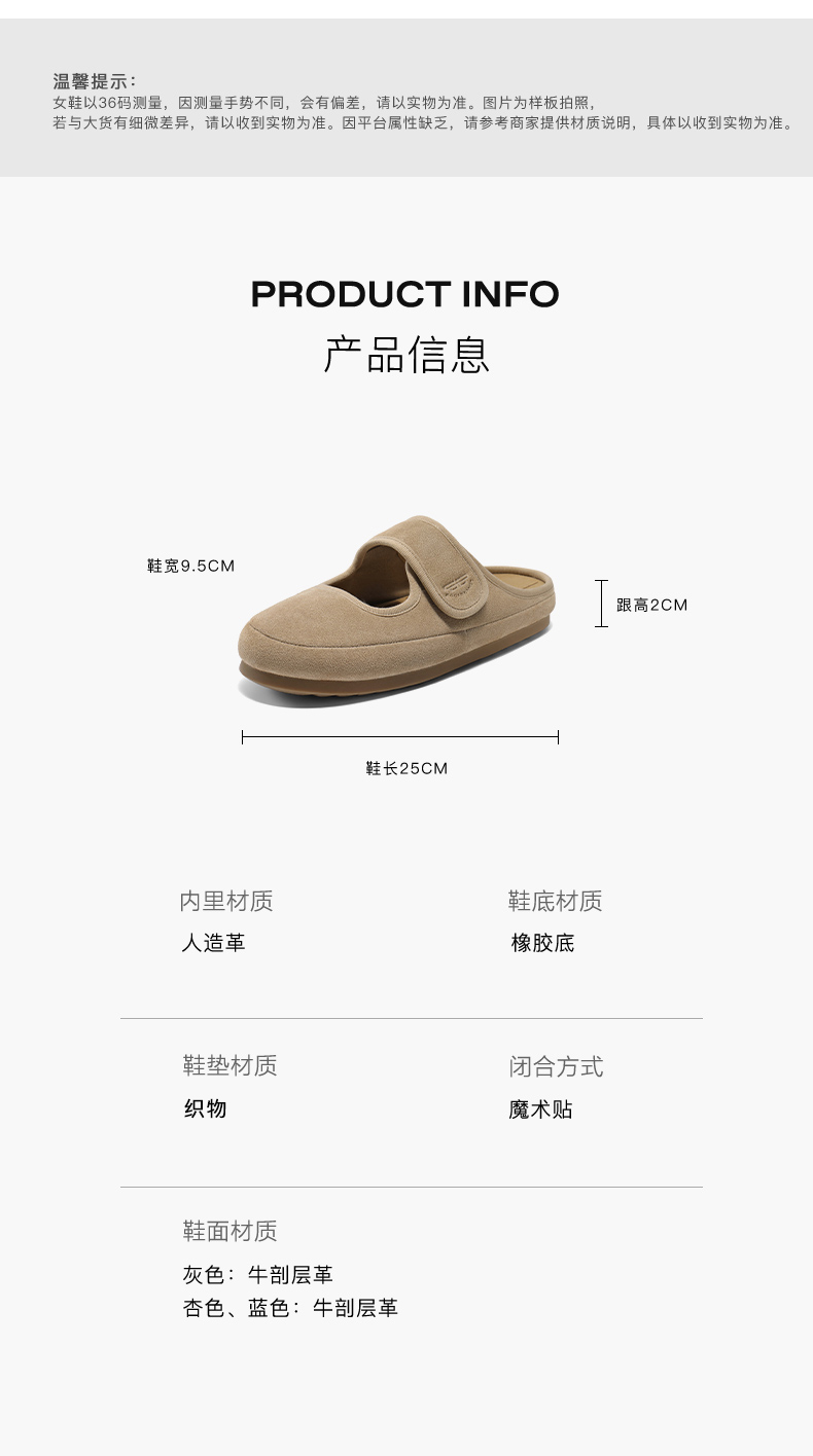 | 鞋帮:低帮 | 鞋底材质:橡胶底 | 内增高:无 | 鞋面材质:牛剖层绒面革 | 闭合方式:针扣 |