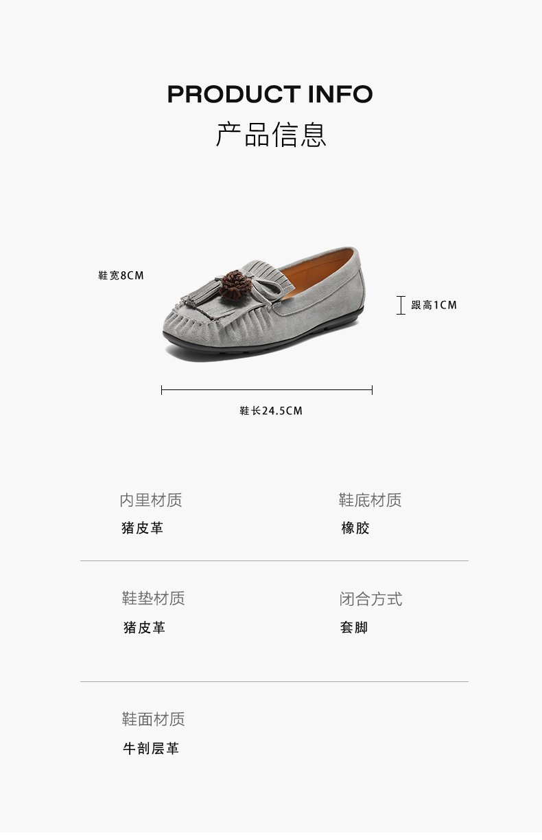 | 配跟:无 | 上市时间:2025年秋季 | 鞋类流行款式:乐福鞋 | 鞋头款式:圆头 | 鞋面图案:纯色 |