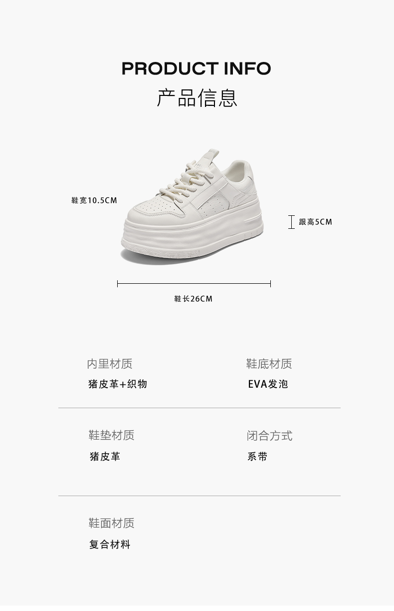 | 鞋跟形状:厚底 | 参考鞋长(女):26CM | 流行元素:纯色 | 参考鞋宽(女):10.5CM | 风格:休闲 |