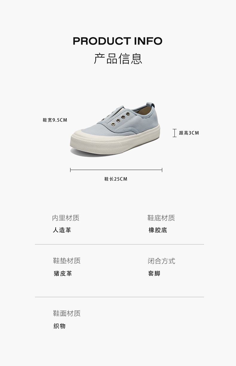 | 鞋帮:低帮 | 鞋底材质:橡胶底 | 内增高:无 | 鞋面材质:织物 | 闭合方式:套脚 |