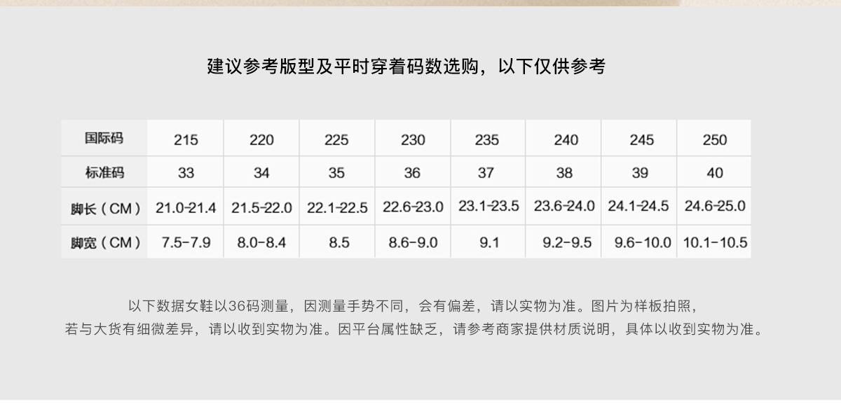 | 鞋跟形状:平跟 | 参考鞋长(女):25CM | 流行元素:纯色 | 参考鞋宽(女):9.5CM | 风格:休闲 |